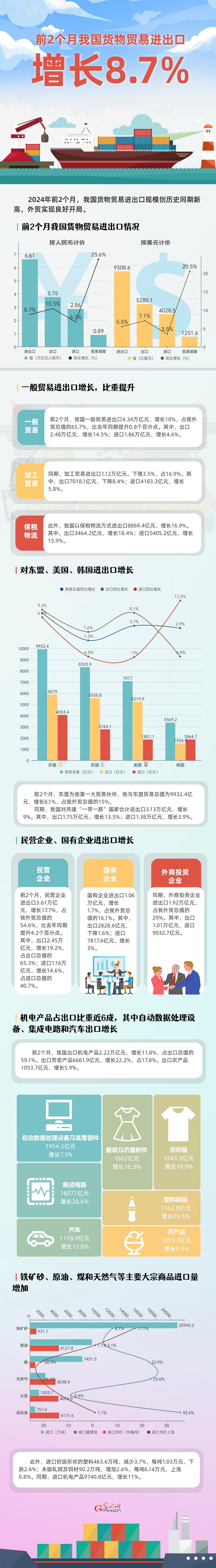 数据图解丨前2个月我国货物贸易进出口增长87%规模创历史同期