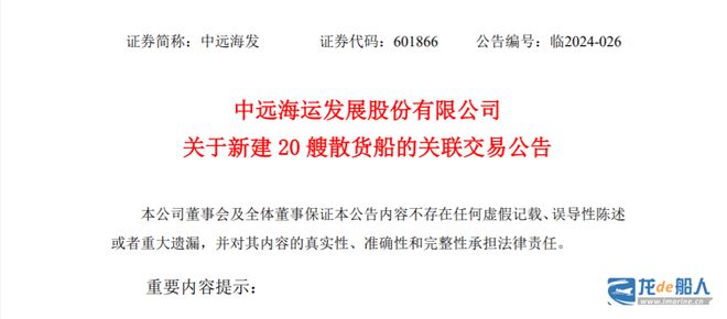 8月30日晚间,中远海运发展股份有限公司(以下简称“中远海发”或“公司”)接连发布《关于新建20艘散货船的关联交易公告》和《关于新建22艘8万吨级散货船的公告》。 公告披露,中远海发将委托中远海运重工所属公司投资建造20艘散货船,委托中船...23