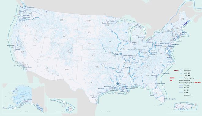 水运船驳是美国国际货物贸易的主要运输方式,在2023年运输了美国全球贸易价值的41.5%,即 美国港口分类:港口分为沿海港口、五大湖/圣劳伦斯航道港口以及内河港口。美国的沿海港口包括东海岸(大西洋沿岸)、西海岸(太平洋沿岸)和墨西哥湾沿岸...05