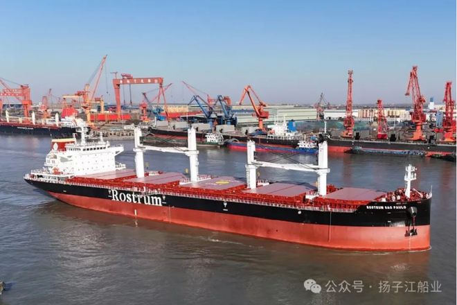 1月10日,扬子江船业集团新扬子造船为船东Vogemann建造的40000DWT散货船“ROSTRUM SAO PAULO”轮交付离厂,投入运营。 该船总长179.95米,两柱间长176.98米,型宽32米,型深15米,设计吃水10.8米...05