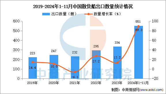 2024年1-11月中国散货船出口数据统计分析:出口量同比增