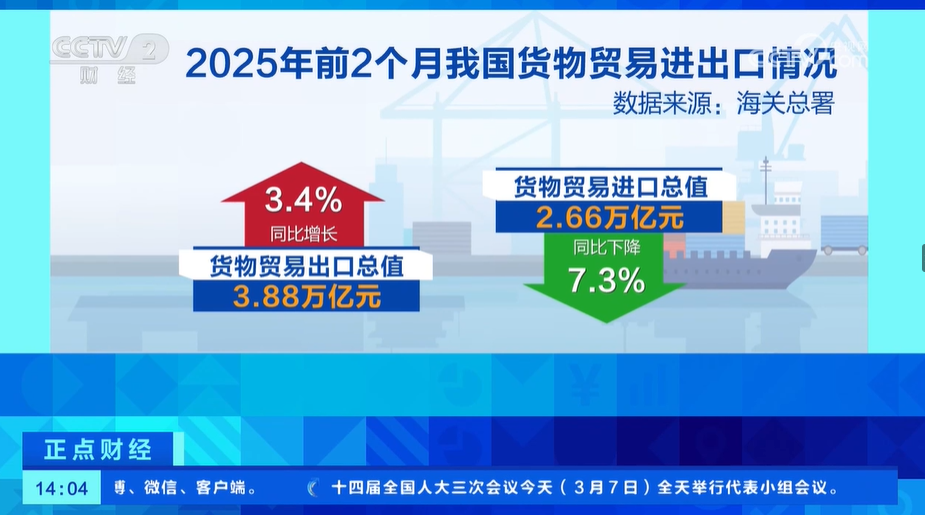 前2个月我国货物贸易进出口总值654万亿元货物贸易平稳开局民