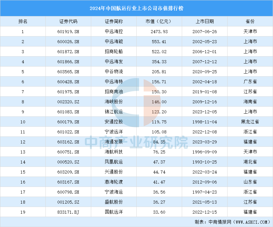 2024年中国航运行业上市公司市值排行榜(附榜单)
