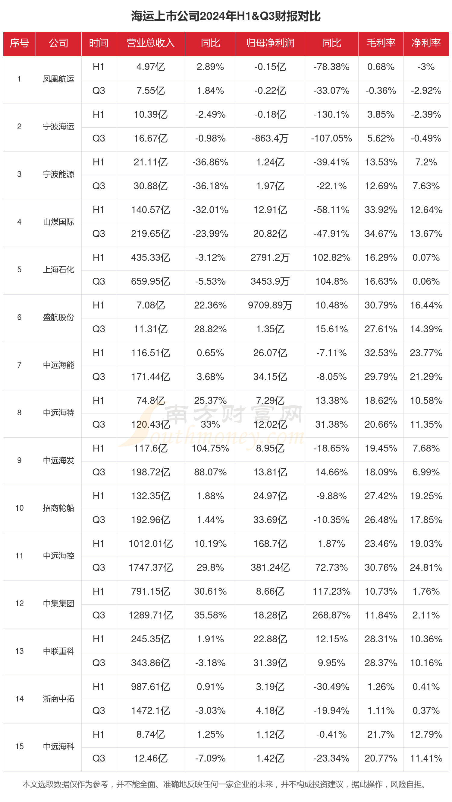海运行业现状怎么样(2024年前三季度上市公司财报对比)