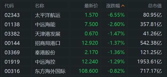港股异动丨港口及海运股走低太平洋航运放量下跌655%