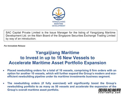 中国最大民营造船巨头扬子江船业集团旗下第三家上市平台——扬子江海事正加快扩张新造船资产版图,选择两家“新兴船厂”集中下单,合计订造16艘散货船与油船。 1月14日,一站式海事金融解决方案提供商扬子江海事发展有限公司(Yangzijiang...22